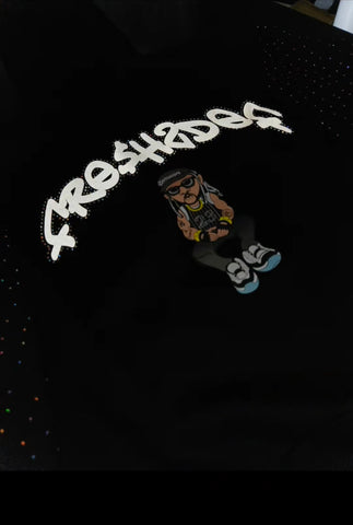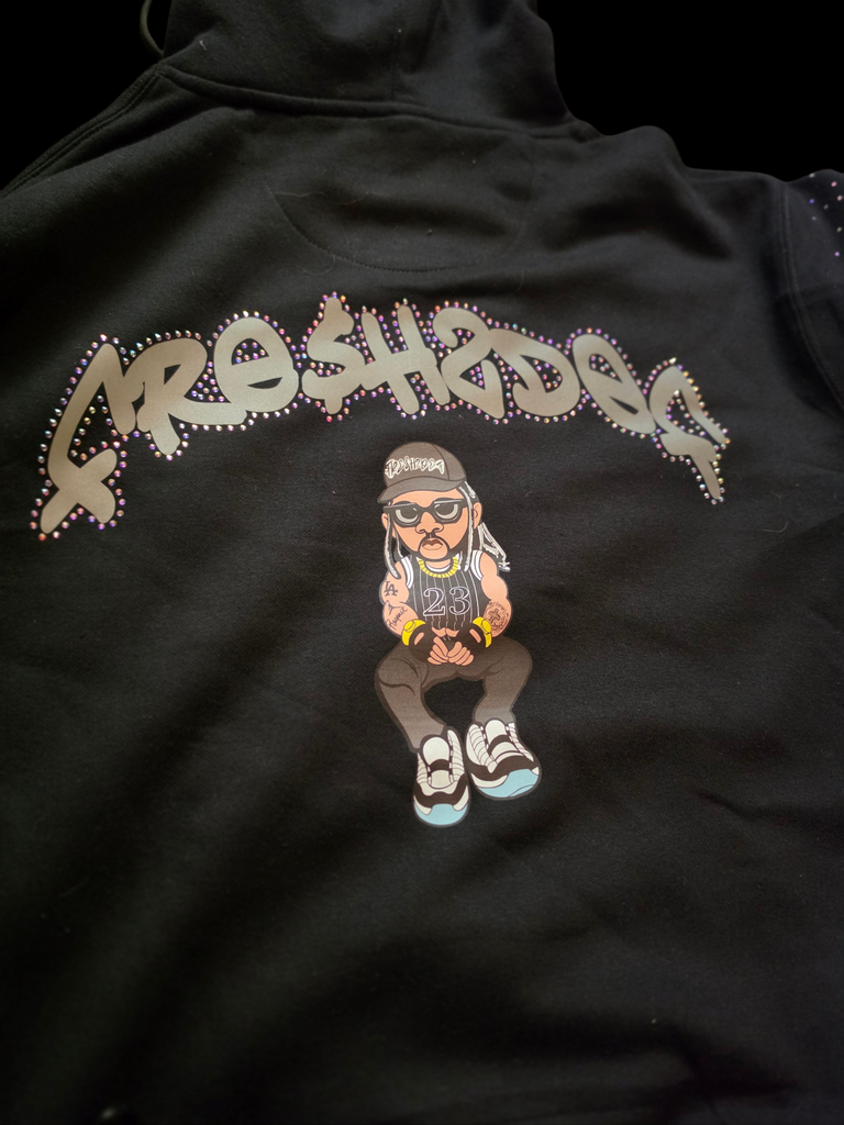 Black heavy weight RHINESTONE REFLECTIVE HOODIE reflective in light and sun with translucent rhinestones